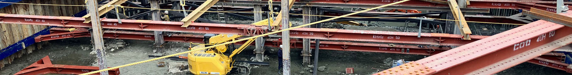 重仮設資材を効率よく適切に使用し、掘削した地盤を土圧や水圧によって地下水などで崩壊しないように支持させる工法で、多くの現場で施工に使われ周囲の地盤を緩め崩すことなく安心して掘削できるのに必要な工法です。止水鉄板などの施工も同時に行います